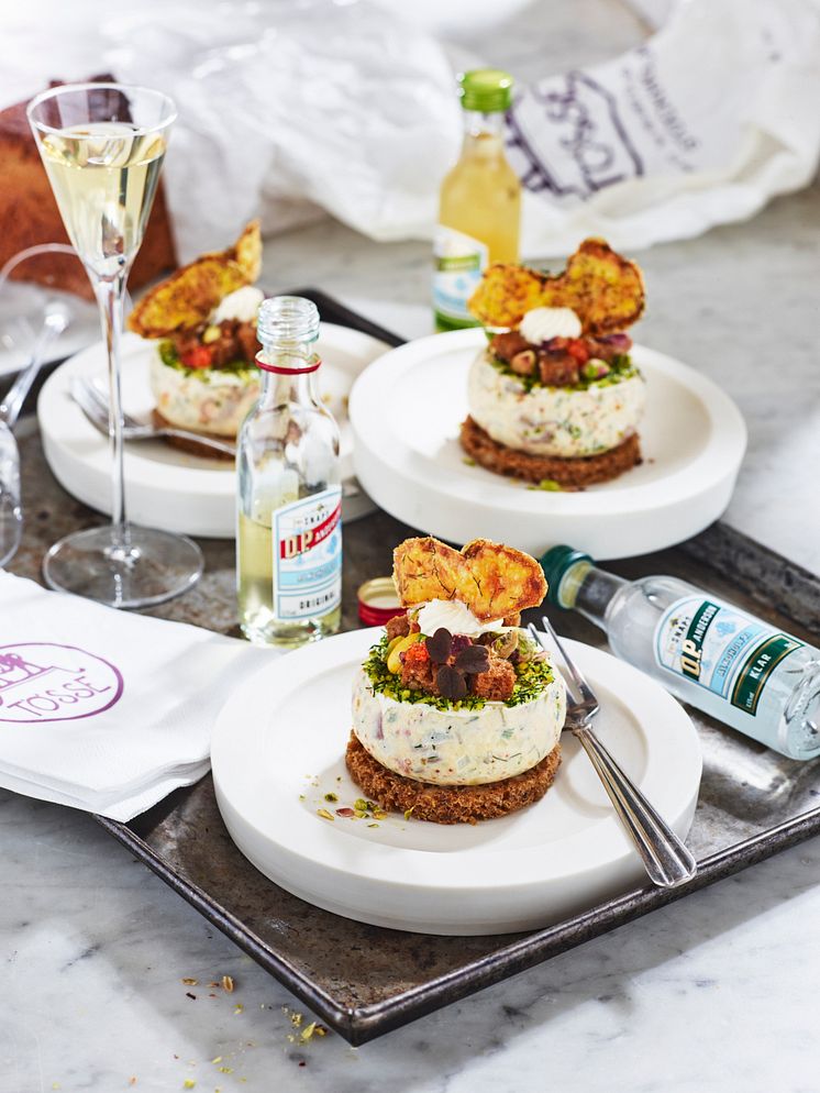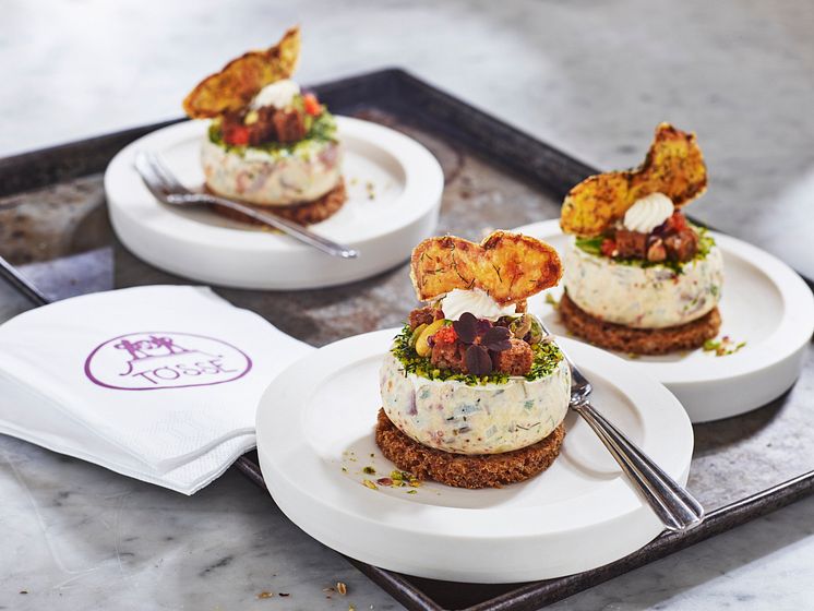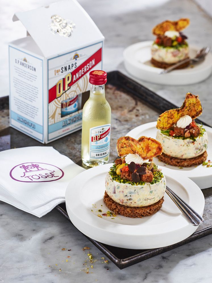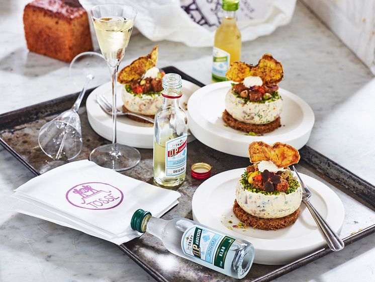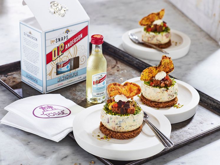 – Jag ville skapa en klassiker till alla gubbar på fars dag och vad kan då vara mer passande än en smörgåstårta med gubbröra. Gubbröran skapar även en perfekt smakkombination till akvaviten, säger Mattias Ljungberg på Tössebageriet. Eftersom O.P. Anderson satsar stort på hållbarhet ville jag även att receptet skulle generera ett så lågt matsvinn som möjligt.