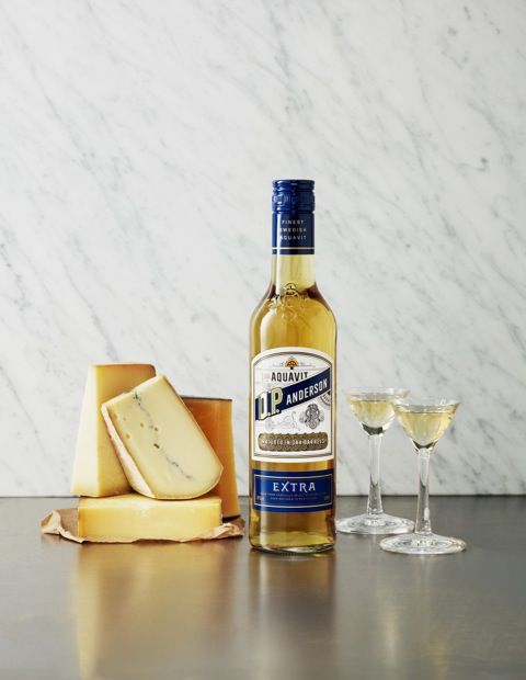 O.P. Anderson Extra, flaska, glas och ost