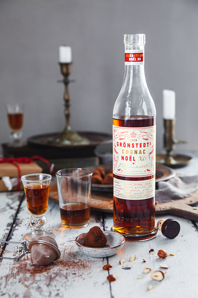 • Grönstedts XO Noël 2018, flaska, glas och tryffel