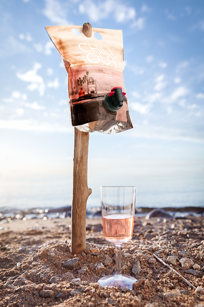 • CHILL OUT Rosé IGP Méditerranée 1,5 L på stranden