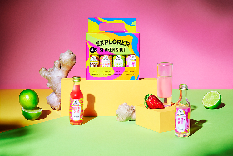 • Explorer Shaken Shot, paket och flaskor