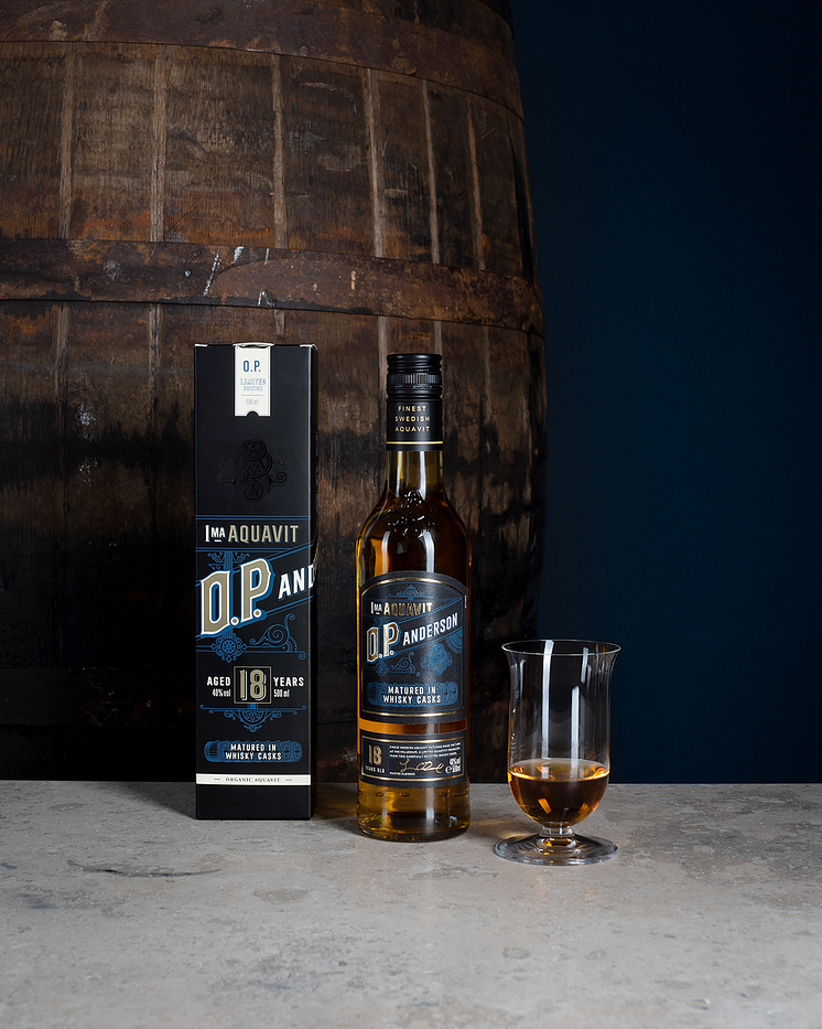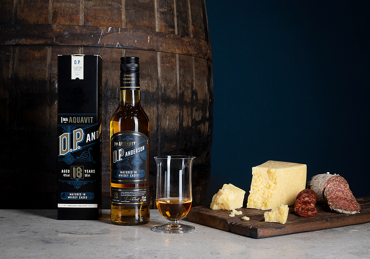 • O.P. Anderson 18 Years Old med ost och chark, stående